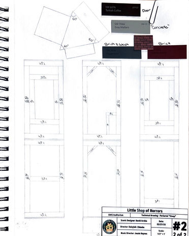 Little Shop of Horrors explores the complexities of dreams and how life grants or denies these dreams in unexpected ways. This story highlights how people and places change, as they navigate the delicate balance between who they are and who they want to become. My vision for the set was to create an ever changing world that would grow as the characters strive for their dreams. The set would start out dull with little to no bright colors, much like a typical slum in New York City. For Skid Row, I wanted its streets to feel oppressive and inescapable, like the characters were suffocating in a nightmare. The towering height of the buildings combined with their perfect symmetry would evoke the feeling of being confined, just as the characters recount feeling trapped in Skid Row. When the shop comes into view it seems nothing out of the ordinary and as dull as the rest of the slum. Nevertheless, the shop's bright neon “open” sign stands out among the dreary Skid Row, representing the first omen of a brighter future. After the appearance of Audrey II, things seem to take a shift for the better. We now see the once barren window display of the shop flourishing with life and the once dull Skid Row is now thriving with new life. Still, this new life comes at a high price. It comes at the price of a dentist, as cruel and malicious as anybody could see by stepping into his office. It comes at the price of a florist, whose shop now looks as good on the inside as his new sign on the outside. However, it also comes at the price of reaching your dreams. As the show reaches its conclusion, the set looks more lively than ever, but the same can’t be said for Seymour and his dreams of escaping Skid Row he once had. When one steps back to look at the picture as a whole, you begin to realize that you are still inside the box you once desired to escape, but the walls just got prettier.
